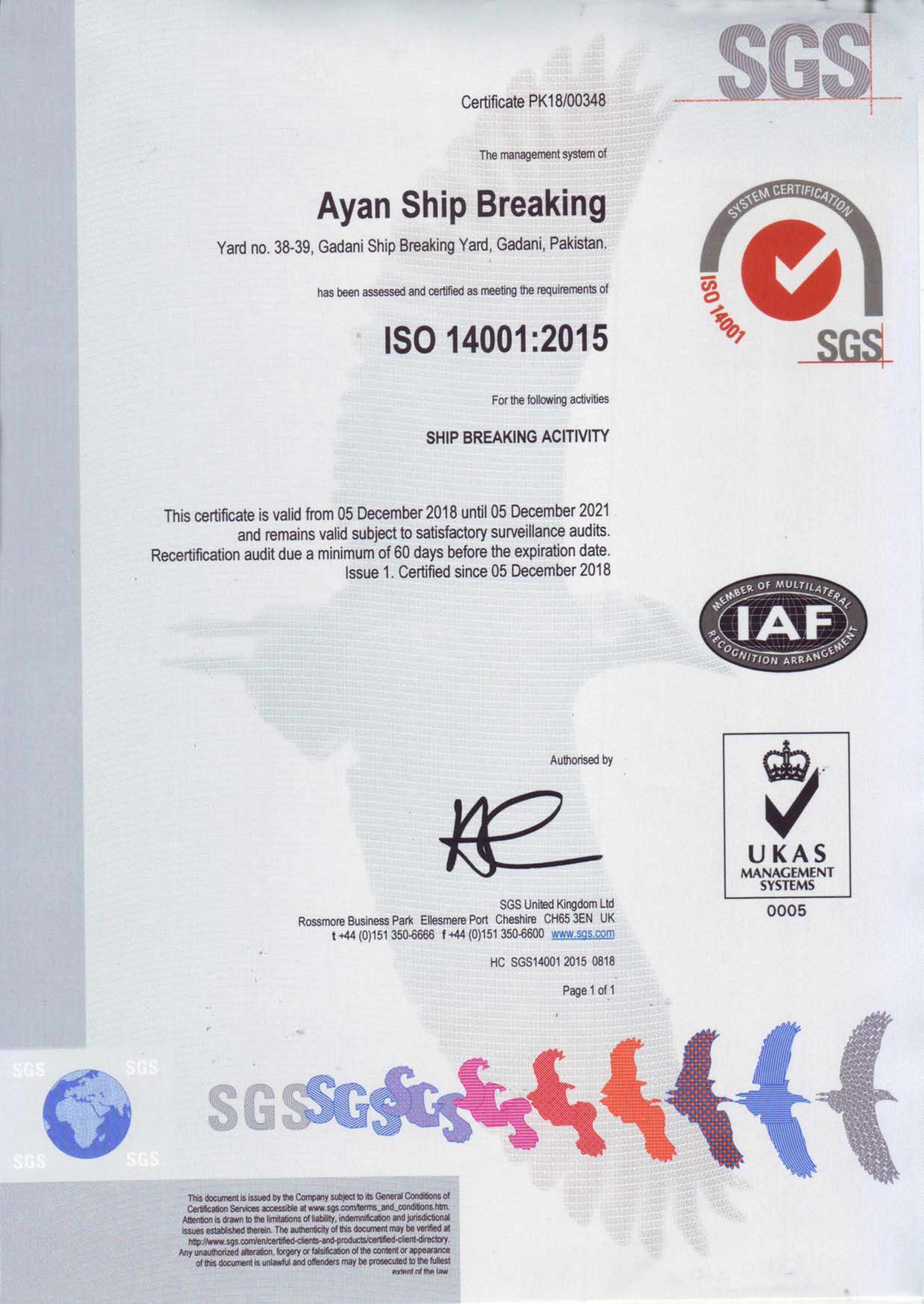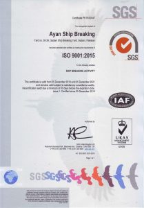 Ayan Shipbreakers has been founded in the year 2010 in Pakistan. The Company started its journey by buying Machinery, Cables and Non-Ferrous items from the Vessels in Gaddani, Pakistan. Three (3) years after that, the Company started to buy their own Vessels which paved way to the Company’s entrance into the Ship-Breaking Industry in 2013.