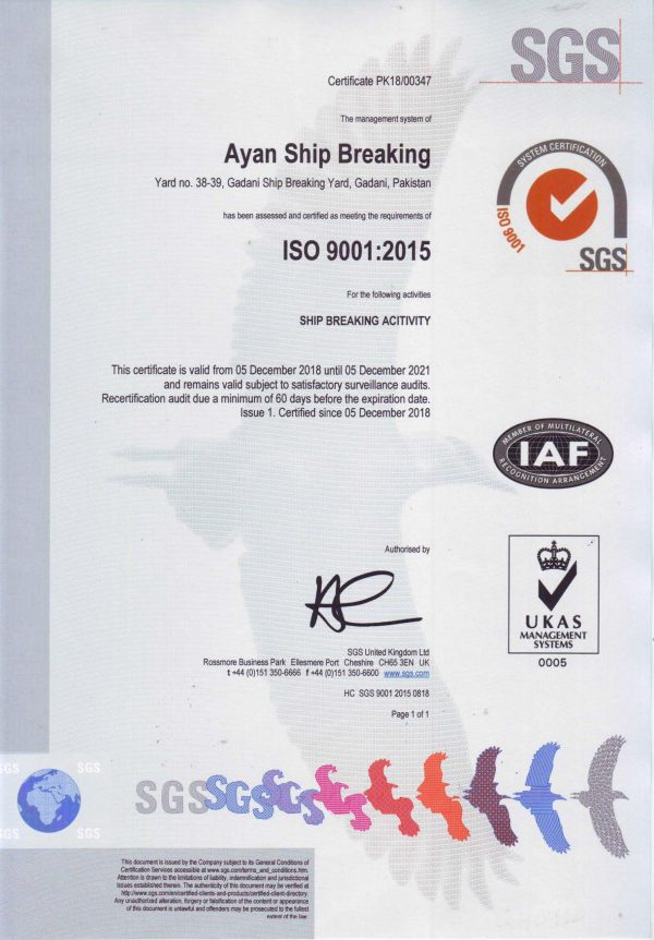 We are committed to continuously provide best services in conformance with Procedures and Standards through our ISO Certified yards in Pakistan.