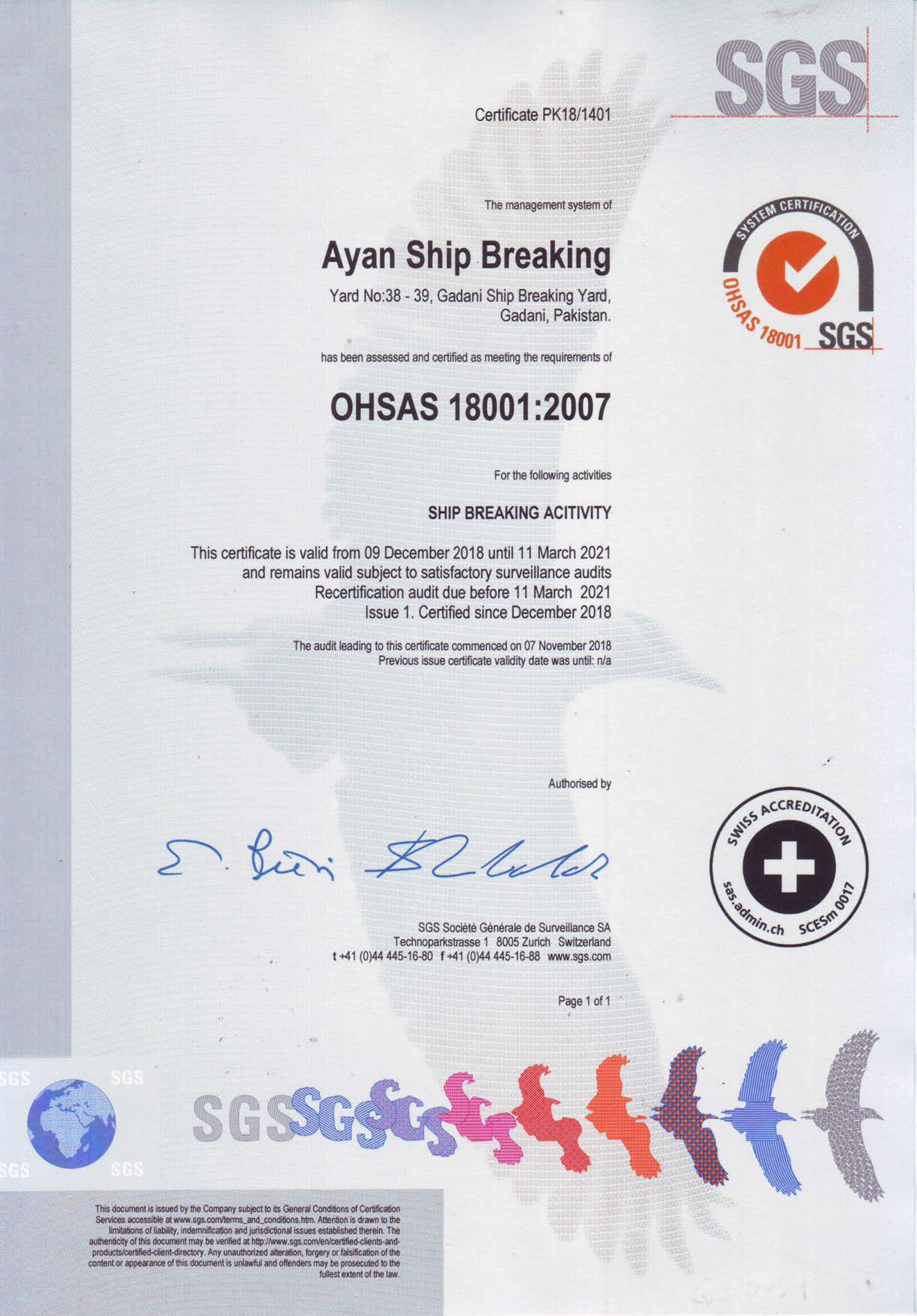 In conformance to the commitment of the Company to provide the best services and standards to the Clients and to the Stakeholders, with the initiative of our CEO and the help of our dedicated Team, the Organization has been awarded with the IMS Accreditation (ISO 9001, ISO 14001 and OHSAS 18001) by SGS Swiss.